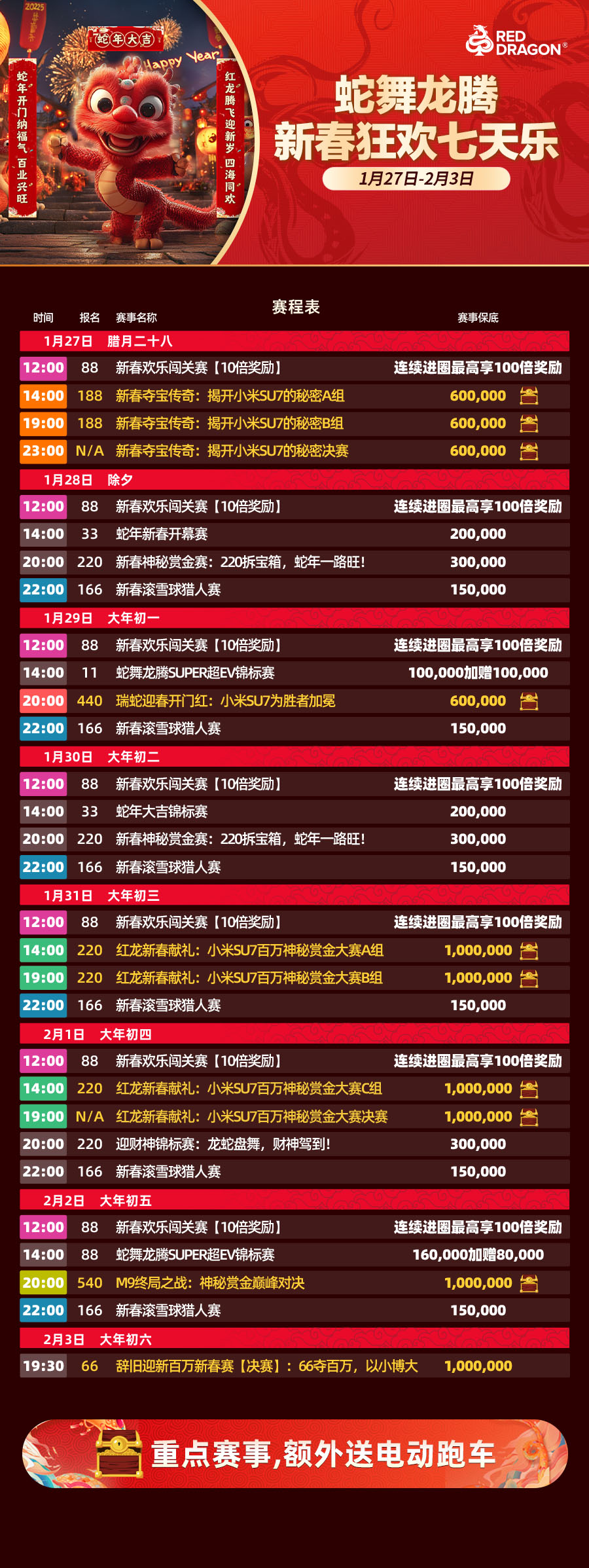 蛇舞龙腾新春狂欢系列赛详细赛程