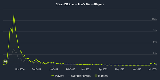 2024年末,一款名叫《骗子酒馆》的小体量社交游戏,在Steam上掀起了一场说谎狂潮。