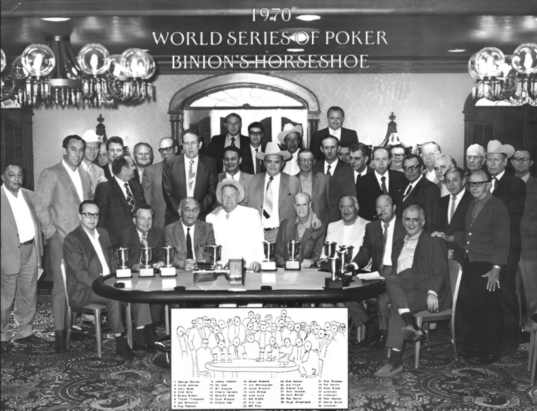 这是首届WSOP在Binion’s Horseshoe的全体合照。
