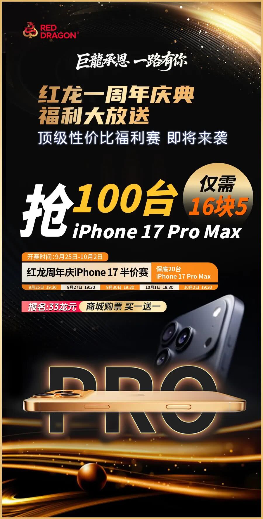 1.红龙周年庆iPhone17半价赛