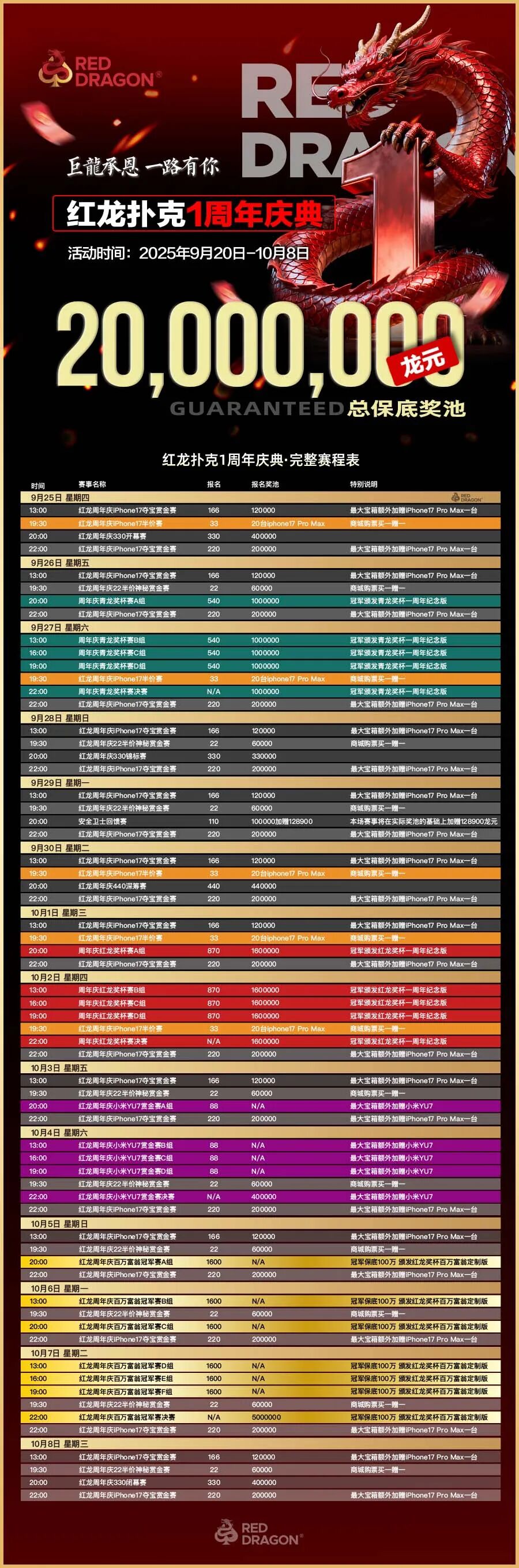 红龙1周年庆典赛事节赛程表