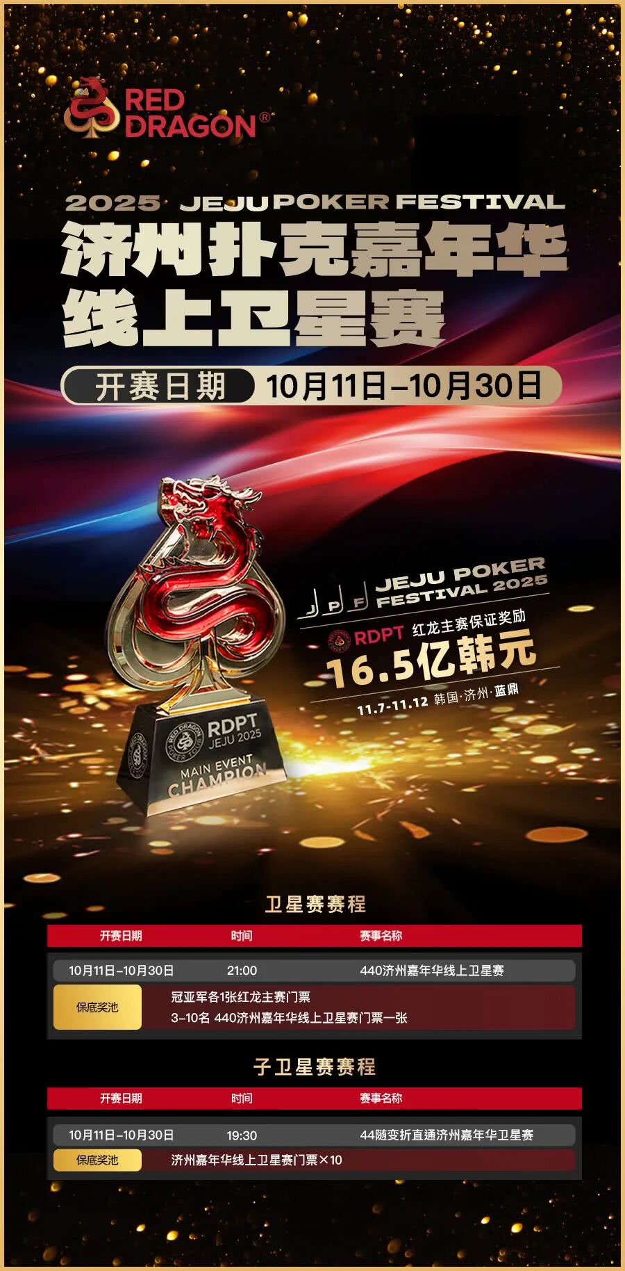 Hans也将在11月1日至11月12日亮相济州扑克嘉年华,首次作为红龙战队的一员亮相在国际大赛的舞台上。红龙尊龙系列豪客赛、红龙杯主赛、远征俱乐部冠名红龙团队赛都是他的必打赛事,期待他在济州扑克嘉年华上带来更多精彩的牌局,收获更多的属于他的荣耀与快乐。
