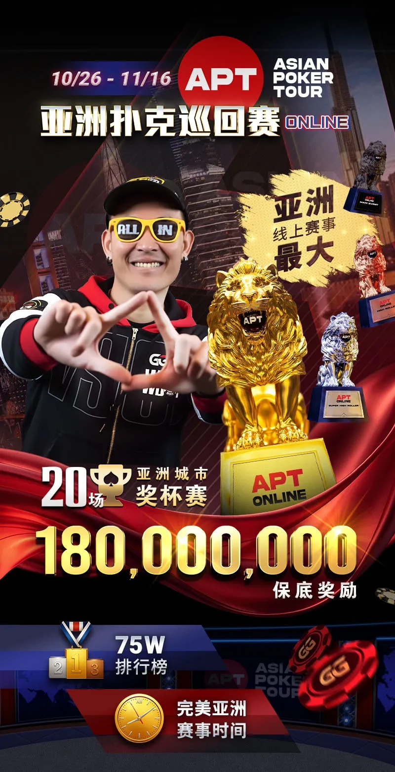 众所期盼!一年一度的《APT亚洲扑克线上巡回赛》,将于10月26日至11月16日重磅回归GGPoker赛场!
