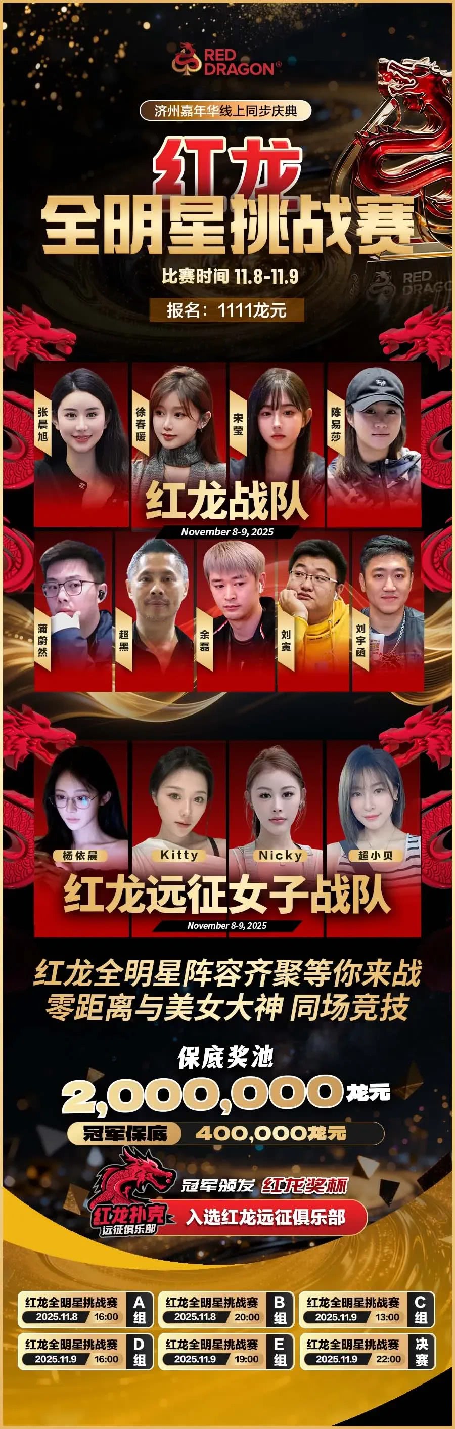 这个周末,让我们一同见证红龙全明星阵容的火热登场,为年底的扑克盛宴点燃最耀眼的星光!