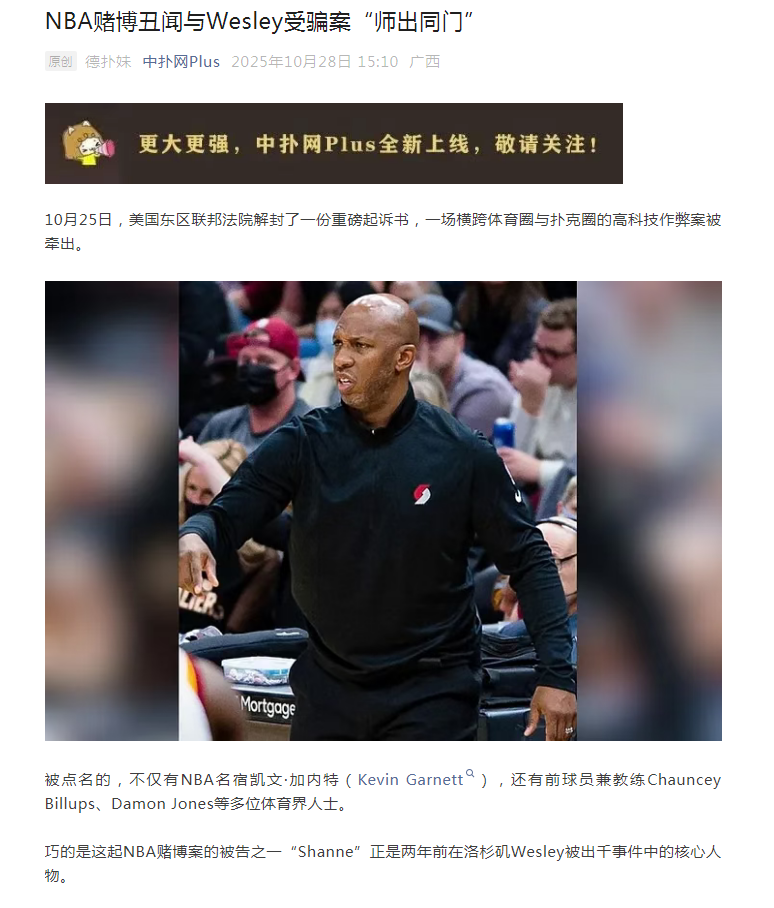 2025年10月,NBA爆出涉赌丑闻,Mars作弊案中的涉案人员Shane Hennen也出现在相关起诉文件中。