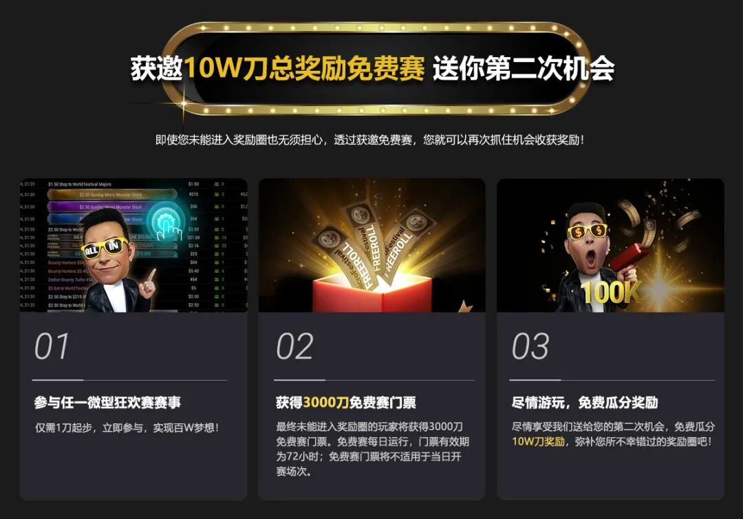 总保底奖励高达1,000w刀,横跨两周、覆盖各类赛制,堪称史上最大规模的小额报名扑克盛会。